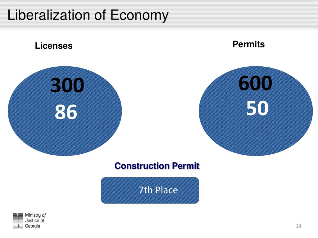 Liberalization of Economy Permits Licenses • 600 • 300 • 50 • 86 Construction Permit • 7th Place