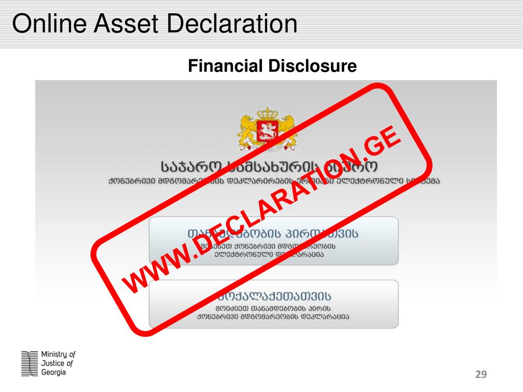 Online Asset Declaration Financial Disclosure WWW.DECLARATION.GE 29 29