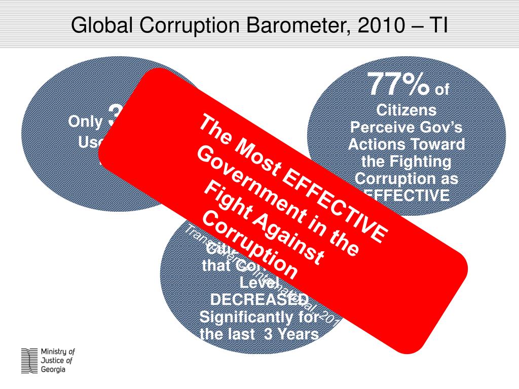 International Rankings “Since 2003, Georgia has had unique success in fighting corruption in public services. [It] destroys the myth that corruption is cultural and gives hope to reformers everywhere who aspire to clean up their public services.” World Bank 2012