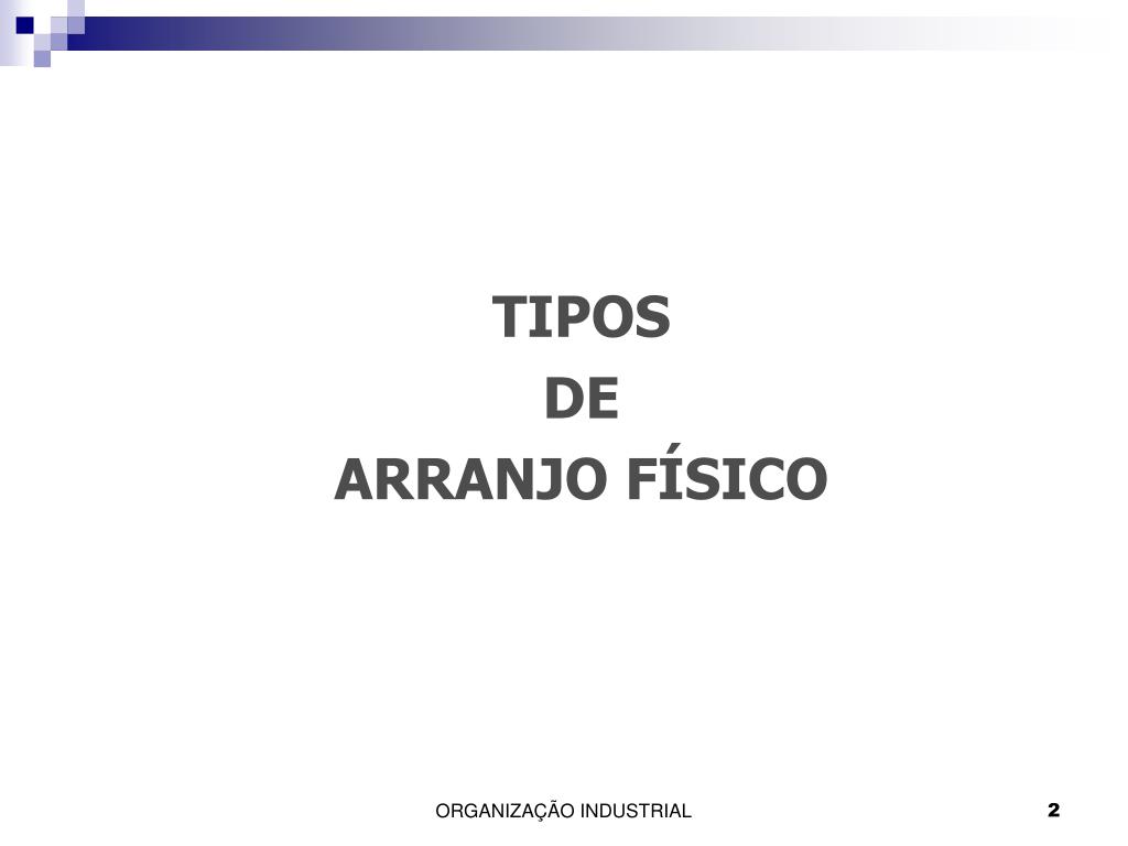 TIPOS DE ARRANJO FÍSICO ORGANIZAÇÃO INDUSTRIAL