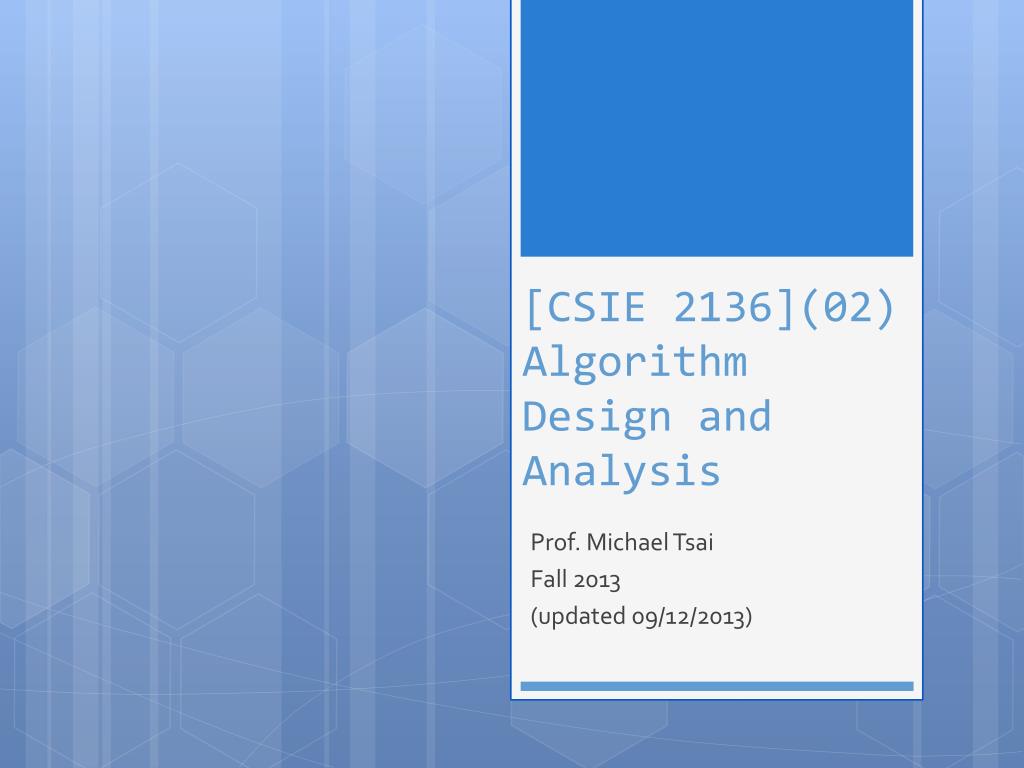 [CSIE 2136](02) Algorithm Design and Analysis Prof. Michael Tsai Fall 2013 (updated 09/12/2013)