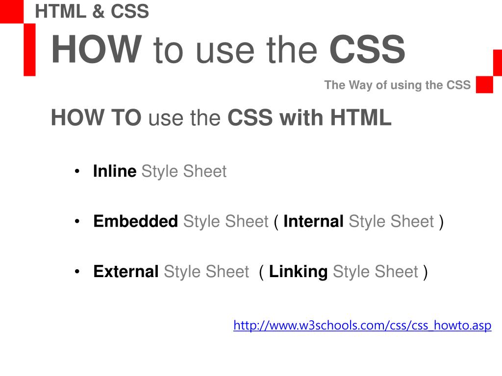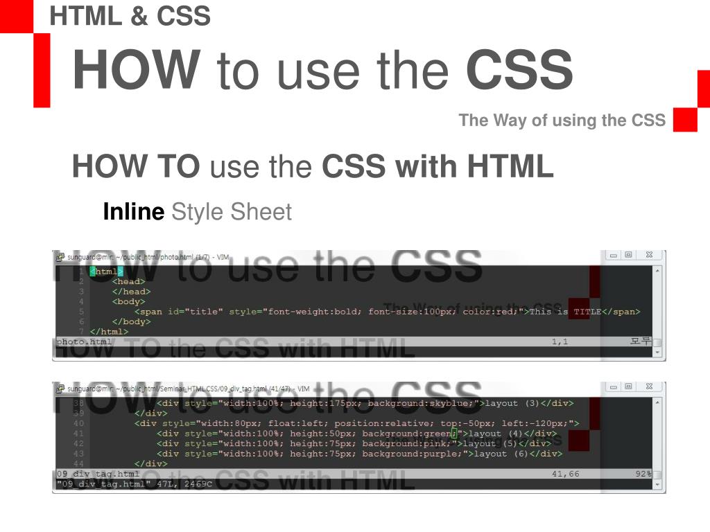 HOW to use the CSS The Way of using the CSS HTML & CSS HOW TO use the CSS with HTML Inline Style Sheet