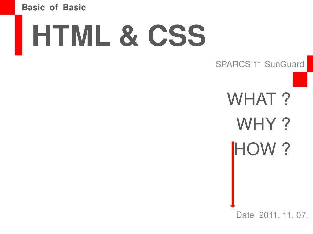Basic of Basic HTML & CSS SPARCS 11 SunGuard WHAT ? WHY ? HOW ? Date 2011. 11. 07.