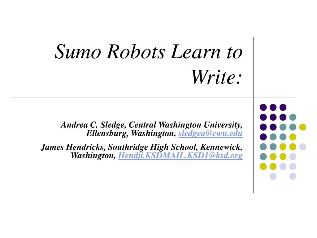 Sumo Robots Learn to Write: Andrea C. Sledge, Central Washington University, Ellensburg, Washington, sledgea@cwu.edu James Hendricks, Southridge High School, Kennewick, Washington, Hendji.KSDMAIL.KSD1@ksd.org