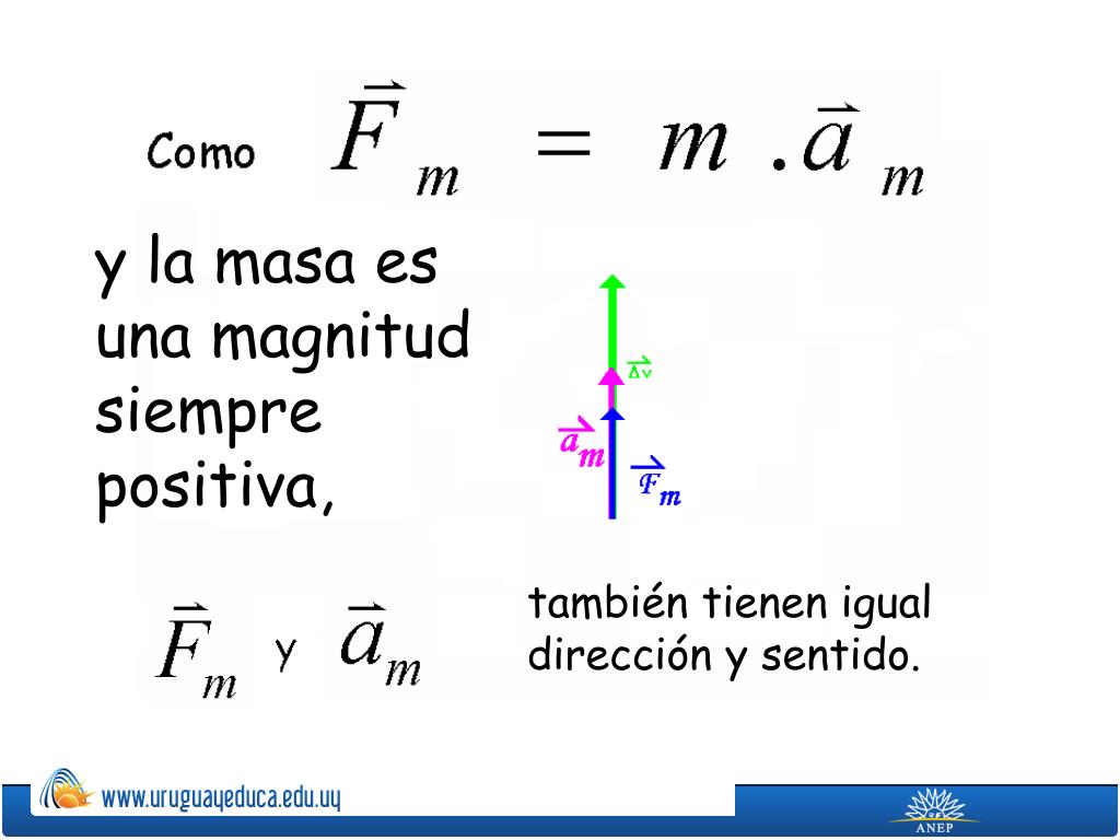y la masa es una magnitud siempre positiva, también tienen igual dirección y sentido.
