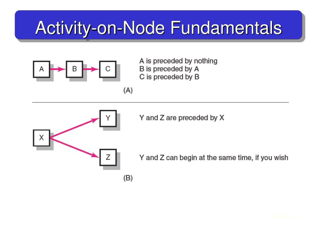 A B D C Constructing a Project Network • Terminology • Activity: an element of theproject that requires time. • Merge activity: an activity that has two or more preceding activities on which it depends. • Parallel (concurrent) activities: Activities that can occur independently and, if desired, not at the same time.