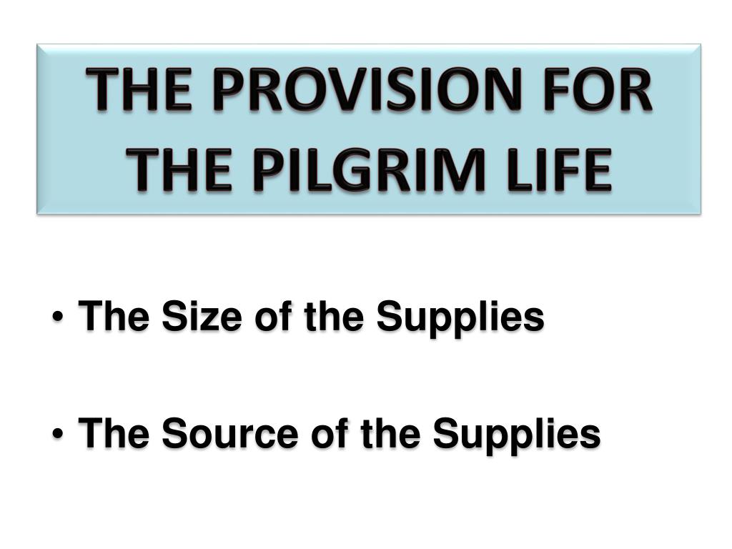 THE PROVISION FOR THE PILGRIM LIFE • The Size of the Supplies • The Source of the Supplies