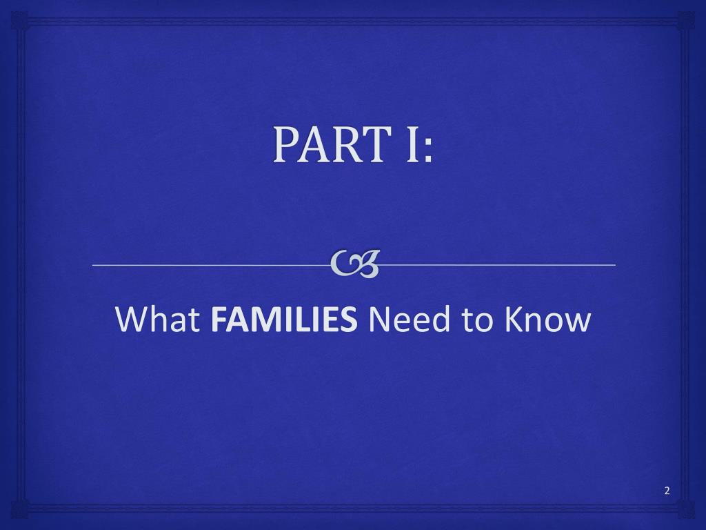 PART I: What FAMILIES Need to Know