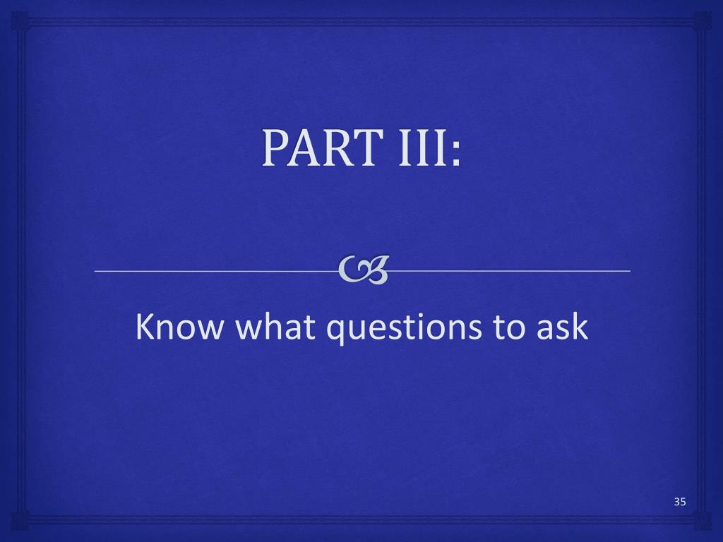PART III: Know what questions to ask
