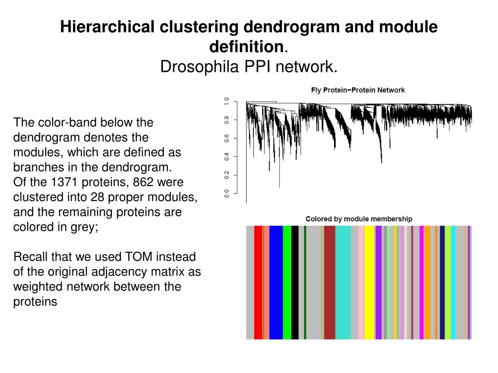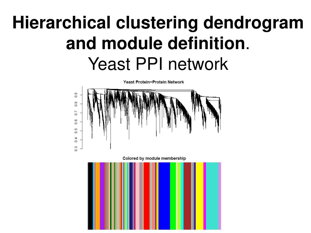 Hierarchical clustering dendrogram and module definition. Yeast PPI network
