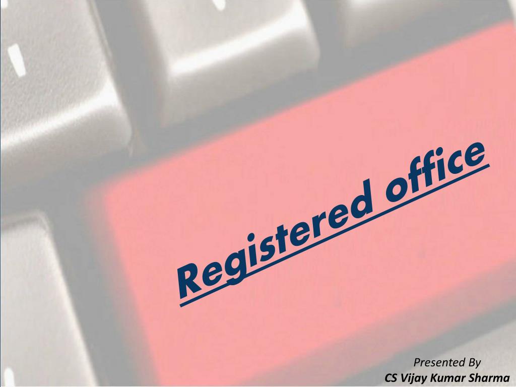 Provision related to Registered Office • At the time of incorporation only address of correspondence till its registered office established. • Company should have its registered office on or before 15th day of its incorporation. • If not furnish verification of registered office or change of its registered office Rs. 1000/- per day penalty maximum upto 1 lacs. Presented By CS Vijay Kumar Sharma