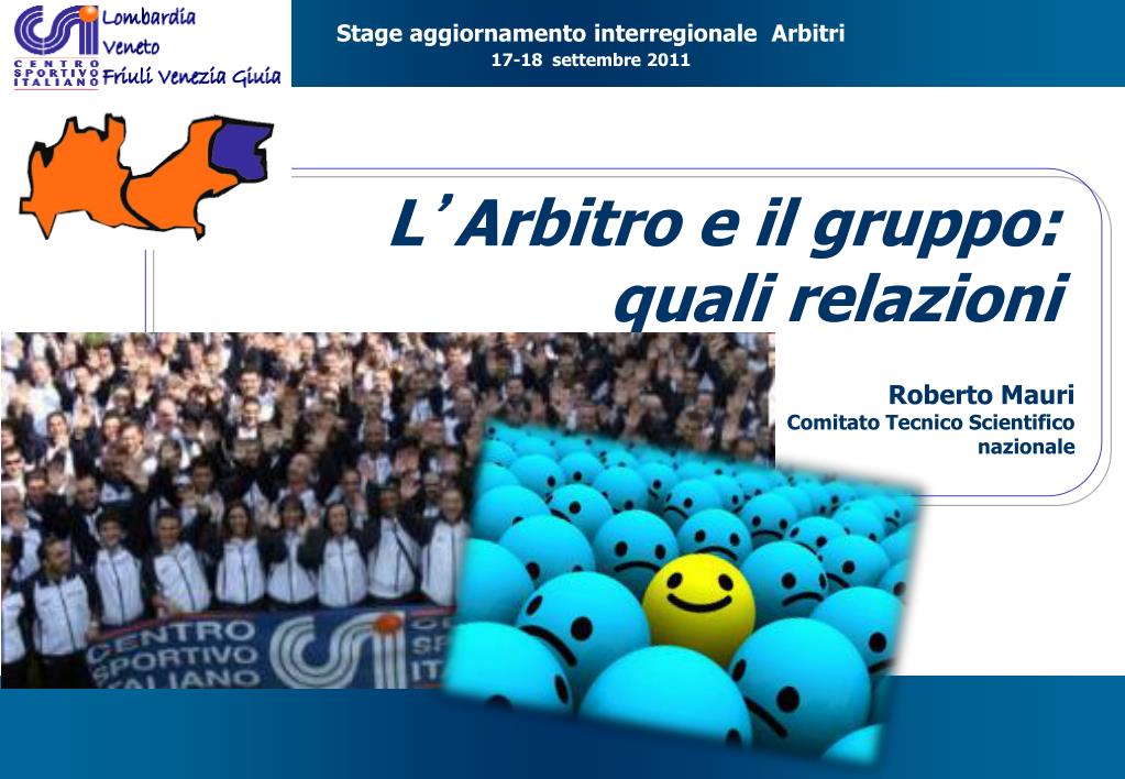 Stage aggiornamento interregionale Arbitri 17-18 settembre 2011 L’Arbitro e il gruppo: quali relazioni Roberto Mauri Comitato Tecnico Scientifico nazionale
