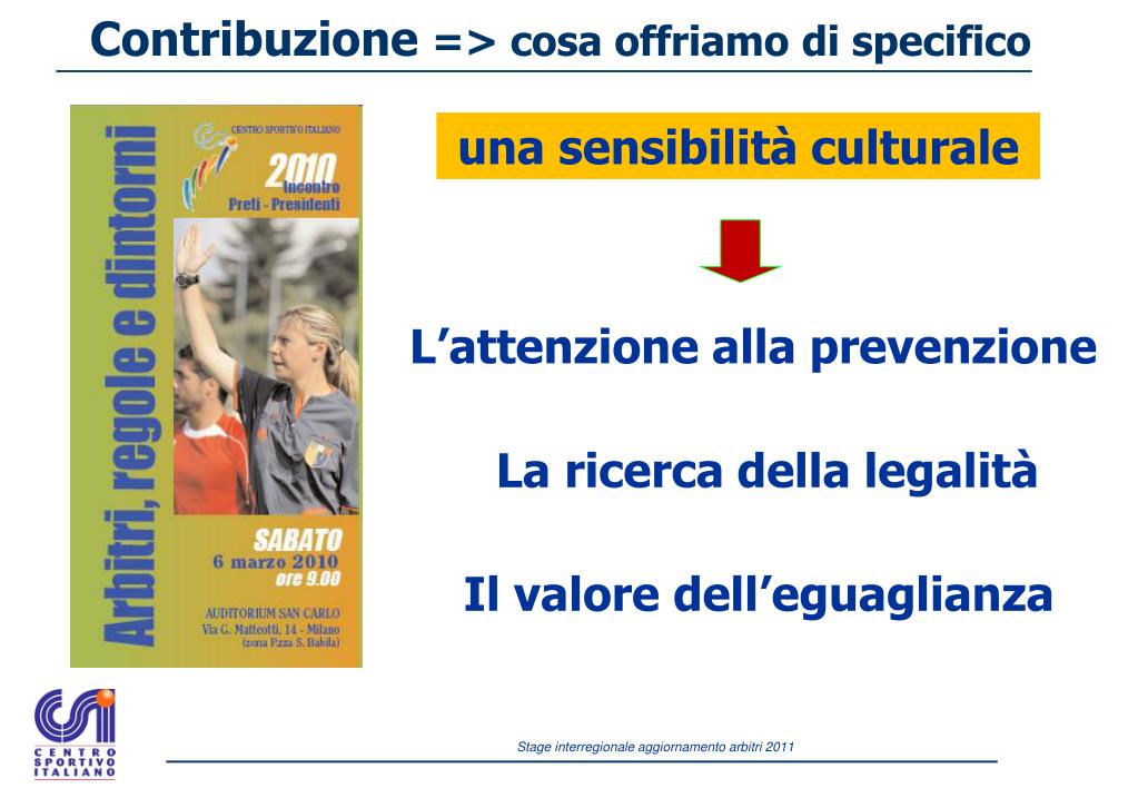 Contribuzione => cosa offriamo di specifico una sensibilità culturale L’attenzione alla prevenzione La ricerca della legalità Il valore dell’eguaglianza