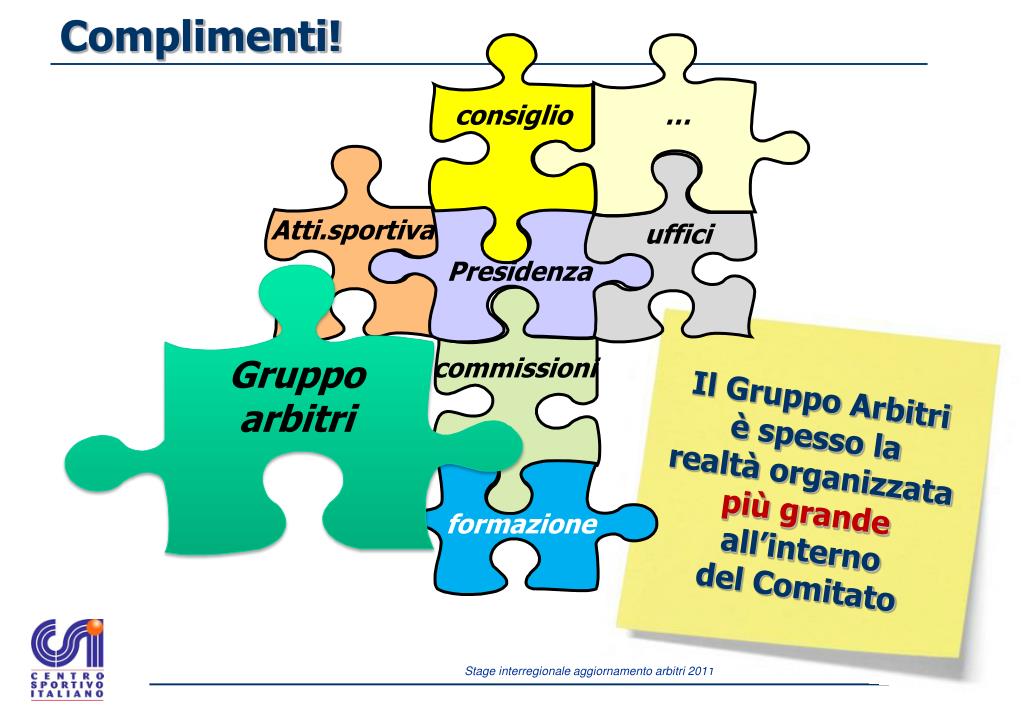 Complimenti! consiglio … Atti.sportiva uffici Presidenza Gruppo arbitri commissioni Il Gruppo Arbitri è spesso la realtà organizzata più grande all’interno del Comitato formazione