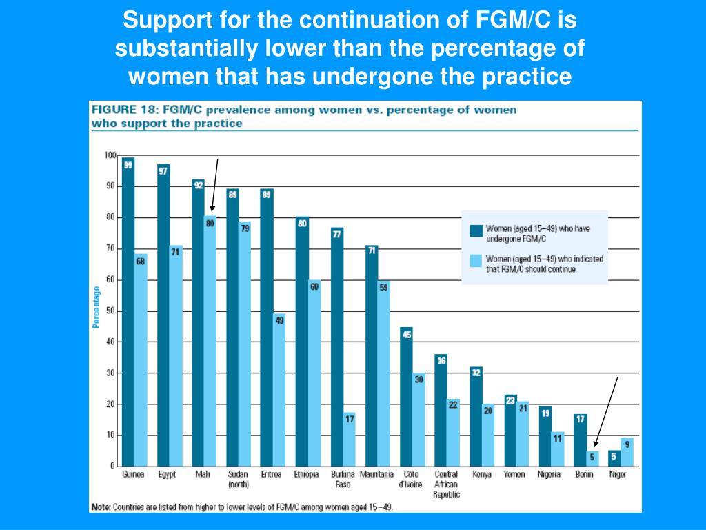 Support for the continuation of FGM/C is substantially lower than the percentage of women that has undergone the practice