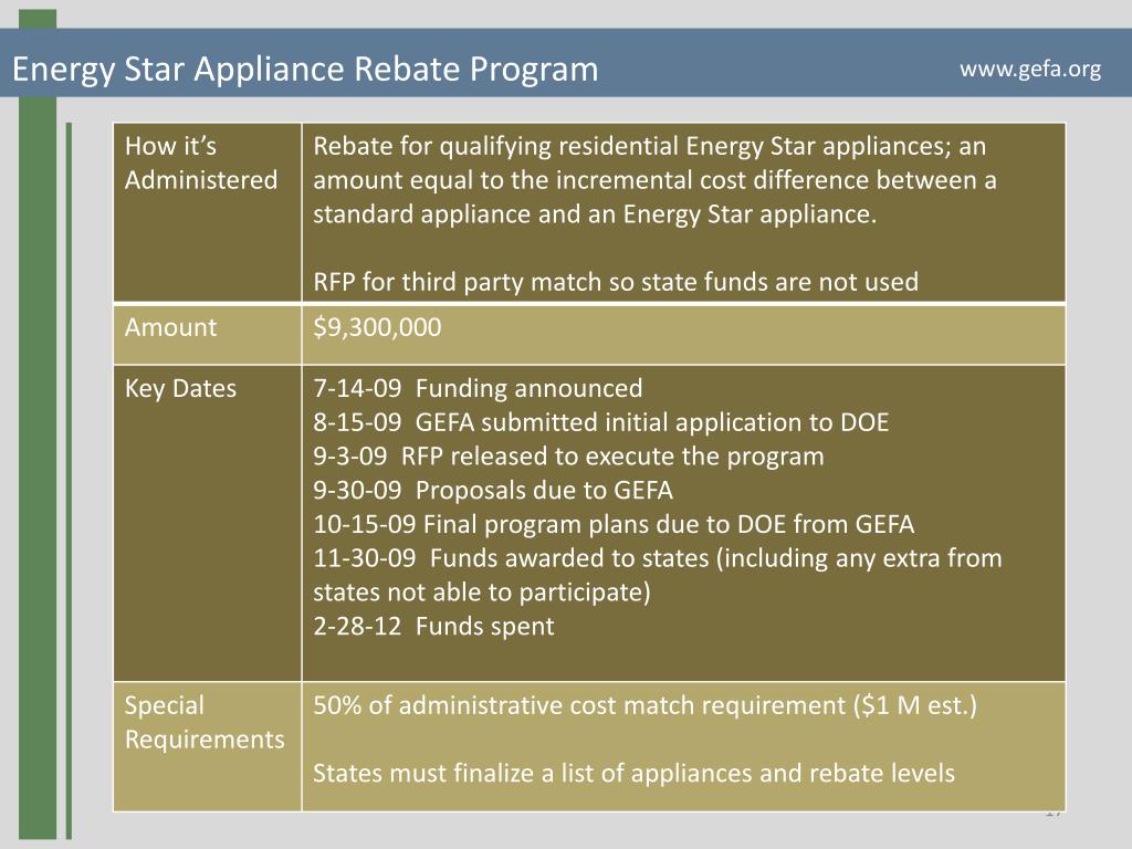 Energy Star Appliance Rebate Program www.gefa.org