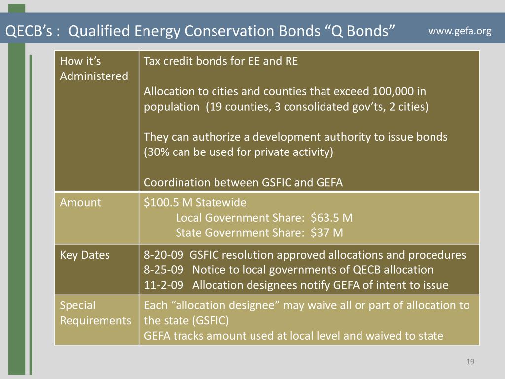 QECB’s : Qualified Energy Conservation Bonds “Q Bonds” www.gefa.org
