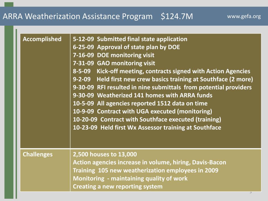 ARRA Weatherization Assistance Program $124.7M www.gefa.org