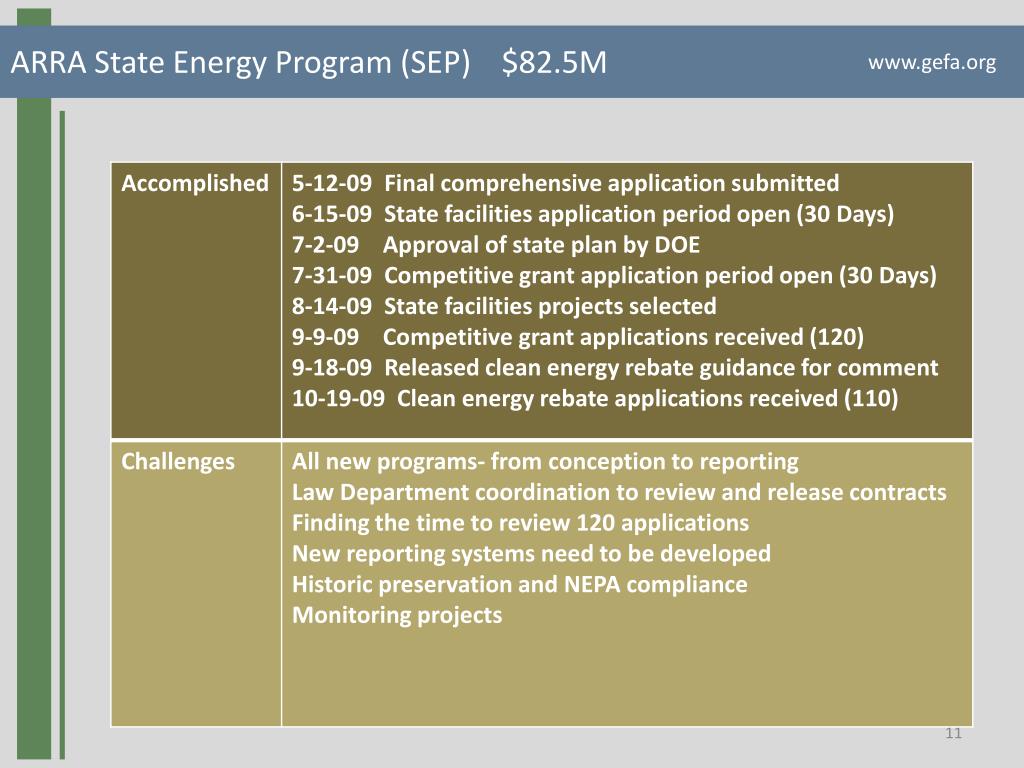 ARRA State Energy Program (SEP) $82.5M www.gefa.org