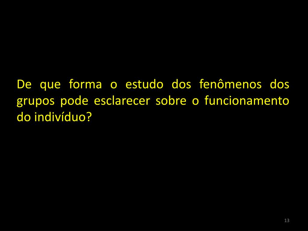 De que forma o estudo dos fenômenos dos grupos pode esclarecer sobre o funcionamento do indivíduo? 13