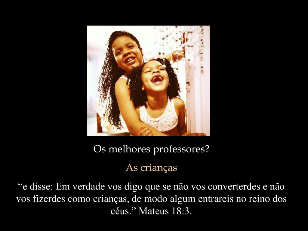 Os melhores professores? As crianças “e disse: Em verdade vos digo que se não vos converterdes e não vos fizerdes como crianças, de modo algum entrareis no reino dos céus.” Mateus 18:3.
