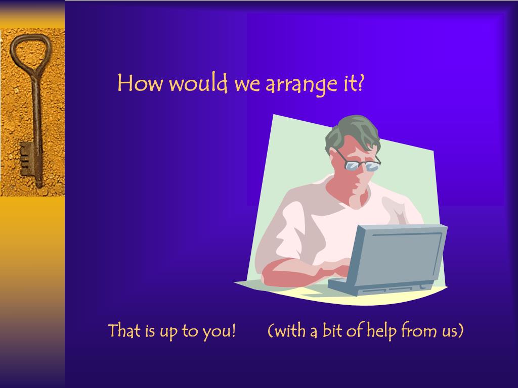 How would we arrange it? That is up to you! (with a bit of help from us)