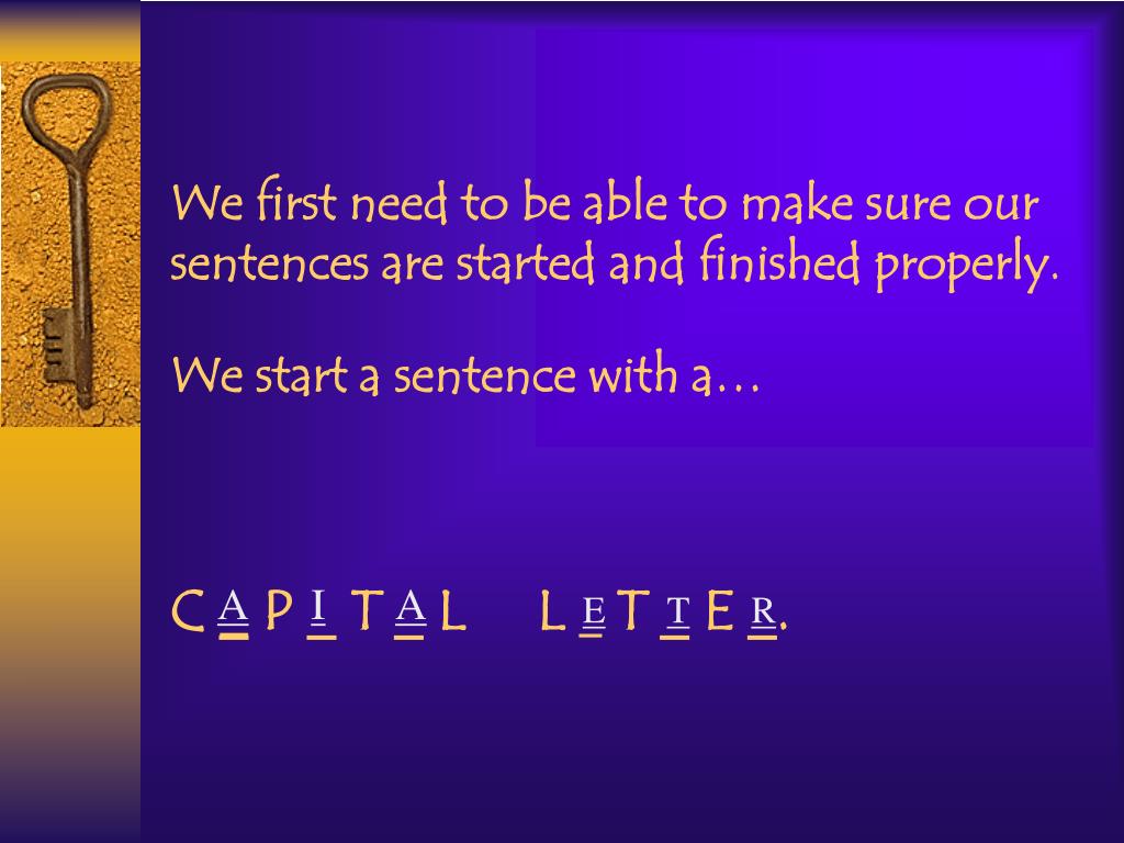 We first need to be able to make sure our sentences are started and finished properly. We start a sentence with a… C _ P _ T _ L L _ T _ E _. A I A E T R