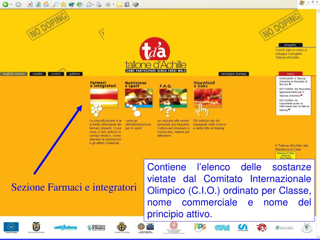 Contiene l’elenco delle sostanze vietate dal Comitato Internazionale Olimpico (C.I.O.) ordinato per Classe, nome commerciale e nome del principio attivo. Sezione Farmaci e integratori