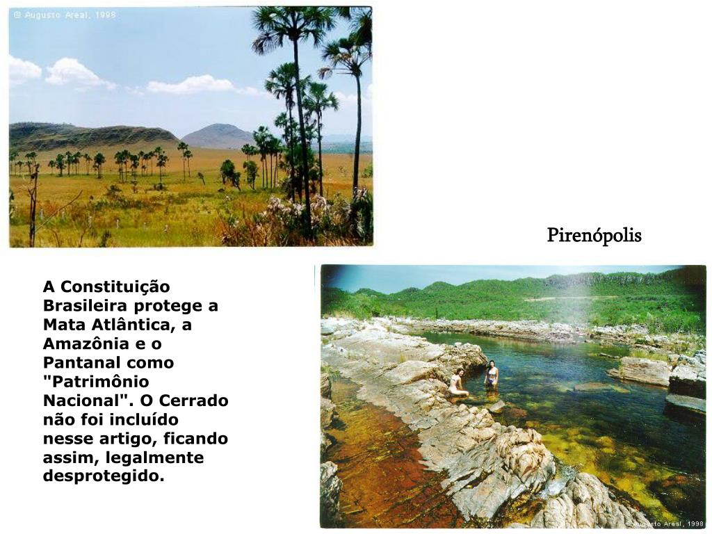 Pirenópolis A Constituição Brasileira protege a Mata Atlântica, a Amazônia e o Pantanal como "Patrimônio Nacional". O Cerrado não foi incluído nesse artigo, ficando assim, legalmente desprotegido.