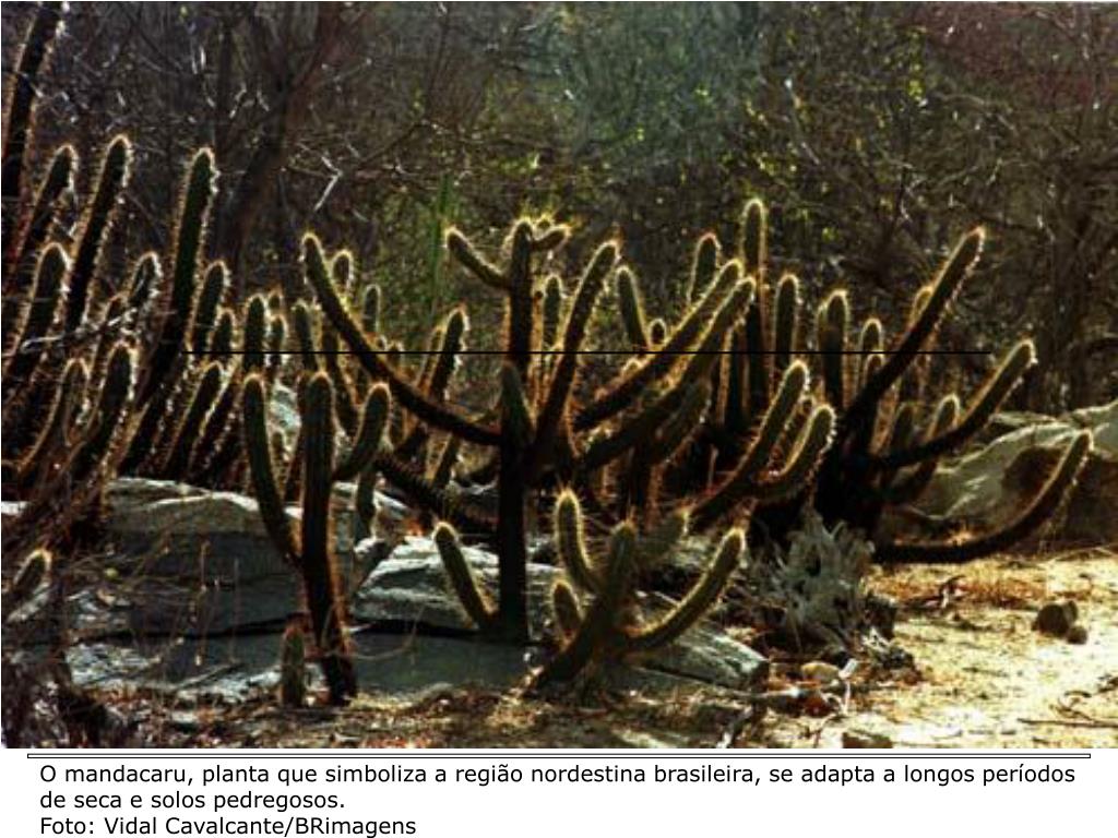 O mandacaru, planta que simboliza a região nordestina brasileira, se adapta a longos períodos de seca e solos pedregosos.Foto: Vidal Cavalcante/BRimagens