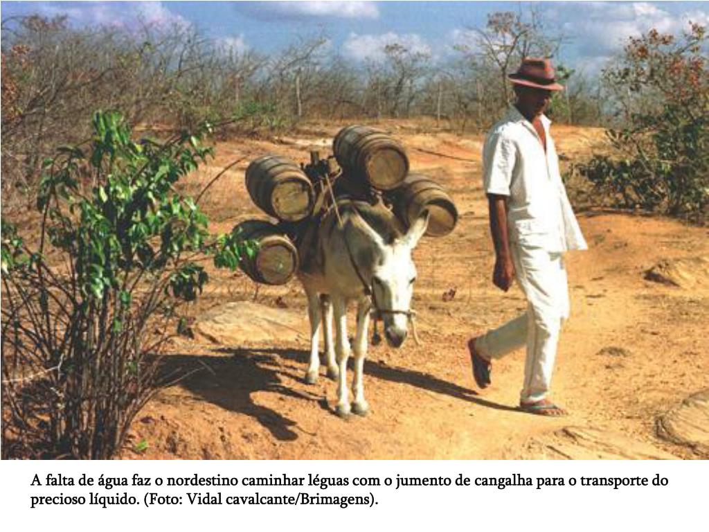A falta de água faz o nordestino caminhar léguas com o jumento de cangalha para o transporte do precioso líquido. (Foto: Vidal cavalcante/Brimagens).