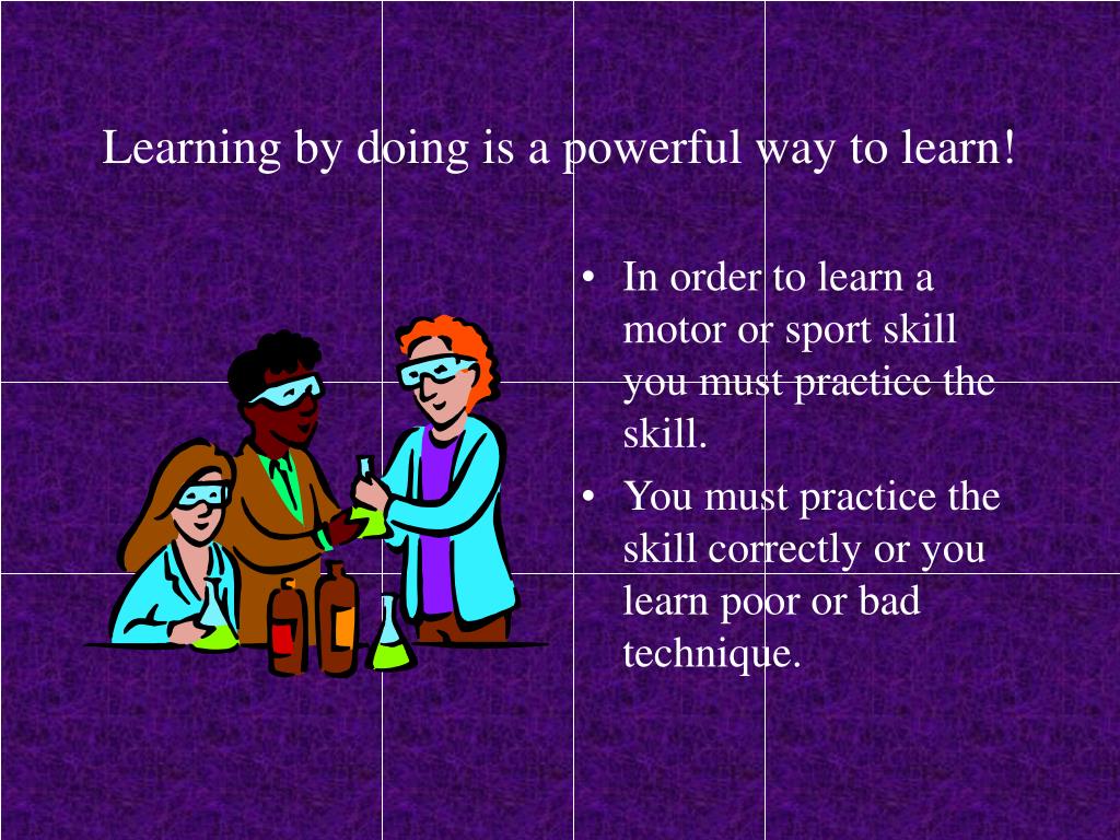 Learning by doing is a powerful way to learn! • In order to learn a motor or sport skill you must practice the skill. • You must practice the skill correctly or you learn poor or bad technique.
