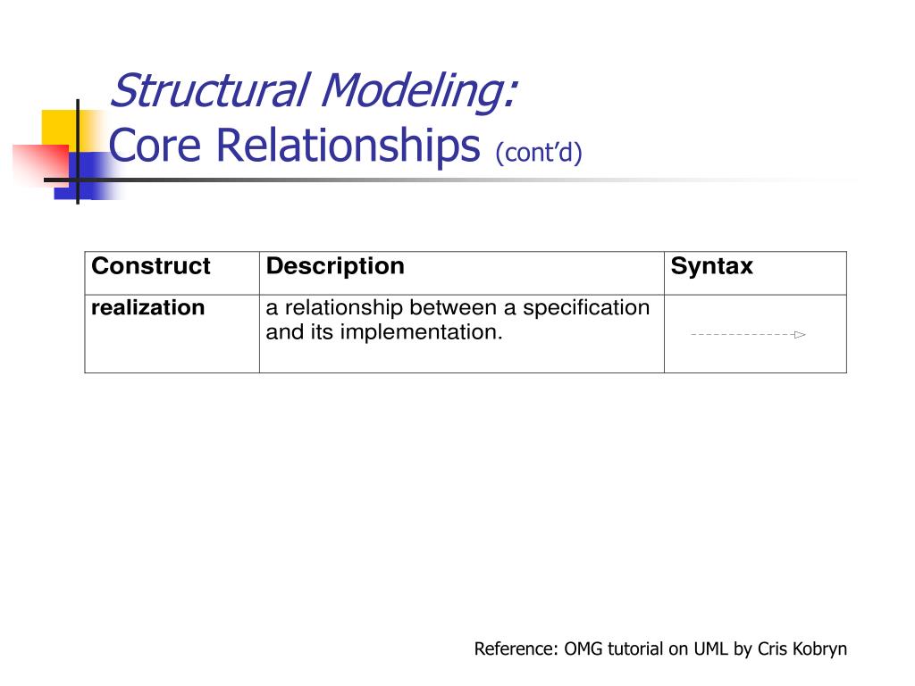 Structural Modeling:Core Relationships (cont’d) Reference: OMG tutorial on UML by Cris Kobryn