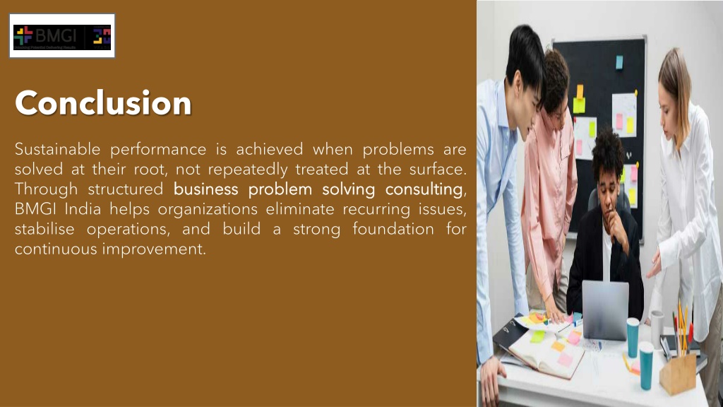 Sustainable performance is achieved when problems are solved at their root, not repeatedly treated at the surface. Through structured business problem solving consulting, BMGI India helps organizations eliminate recurring issues, stabilise operations, and build a strong foundation for continuous improvement.<br><br>https://www.bmgindia.com/problem-solving