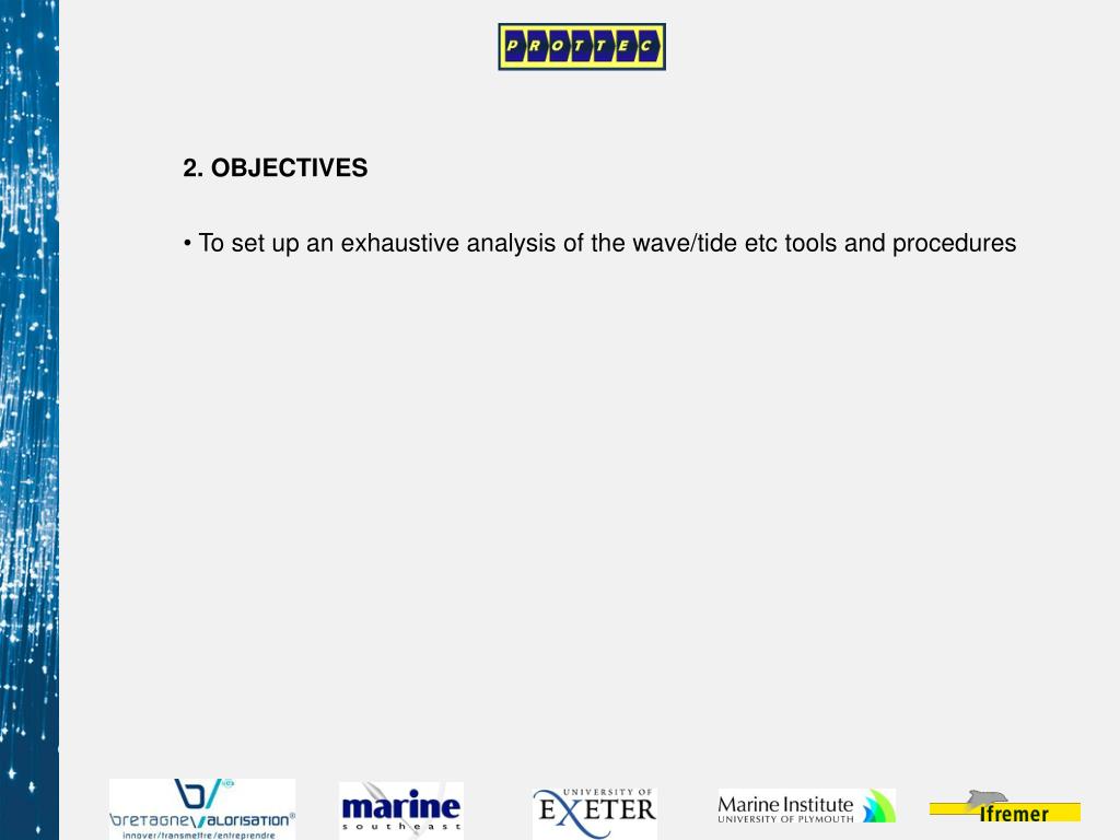 2. OBJECTIVES • To set up an exhaustive analysis of the wave/tide etc tools and procedures