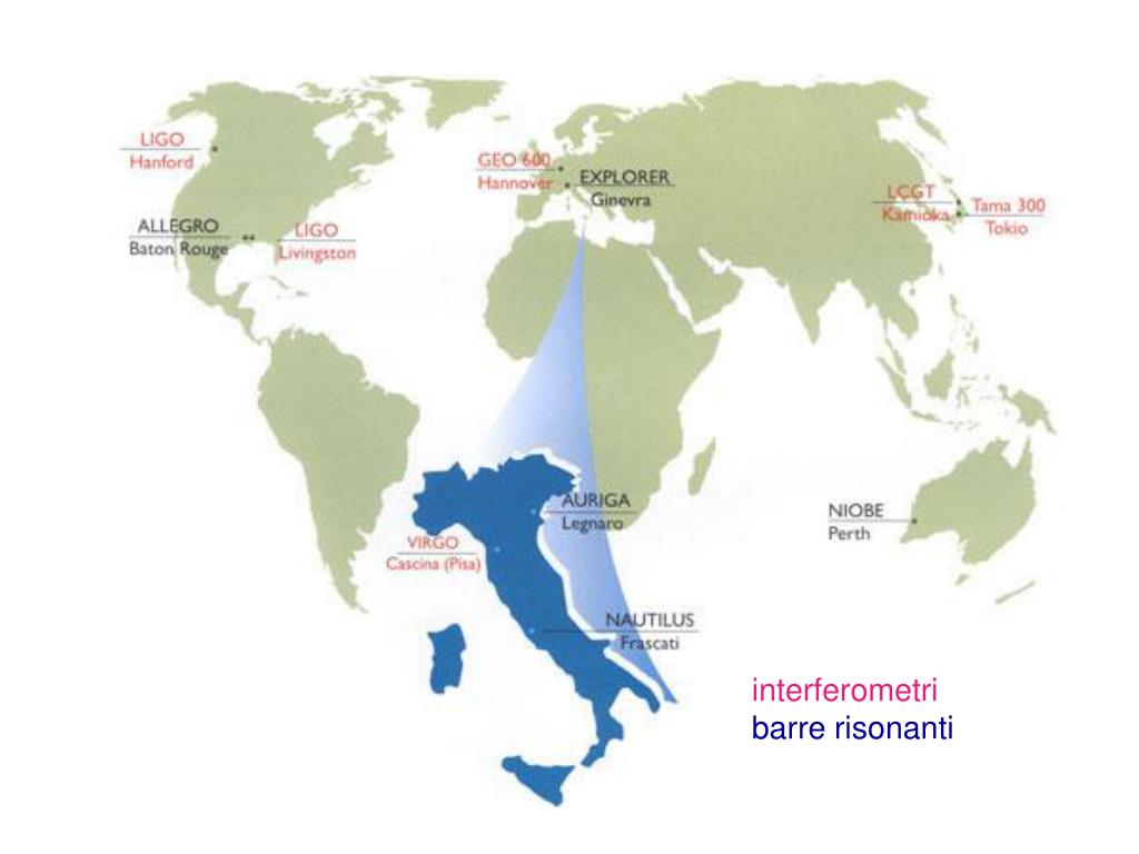 Rivelatori • Rivelatori Risonanti x y O.G.eccita modi di vibrazione longitudinali di una barra metallica L +L L • Rivelatori Interferometrici y O.G.produce differenza di cammino della luce lungo i bracci di un interferometro x x 2 tipi fondamentali
