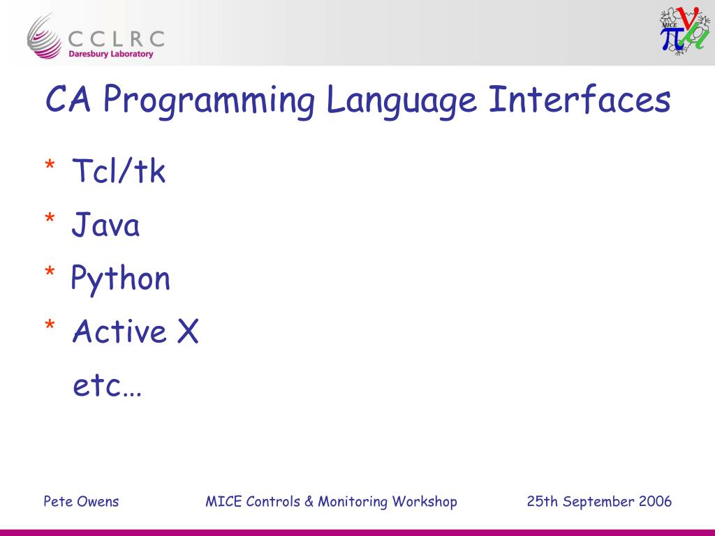 CA Programming Language Interfaces • Tcl/tk • Java • Python • Active X etc…