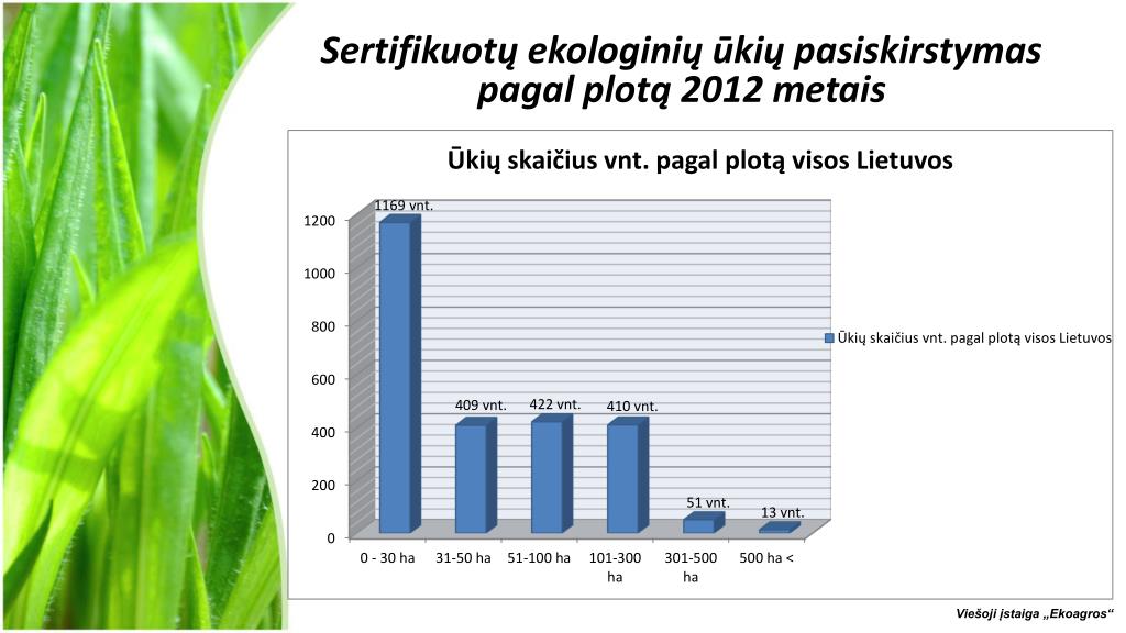 Sertifikuotų ekologinių ūkių pasiskirstymas pagal plotą 2012 metais Viešoji įstaiga „Ekoagros“