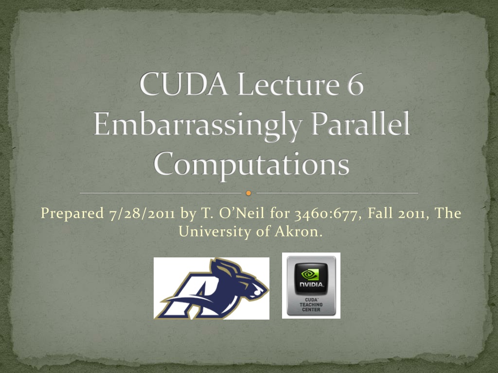 CUDA Lecture 6Embarrassingly Parallel Computations Prepared 7/28/2011 by T. O’Neil for 3460:677, Fall 2011, The University of Akron.