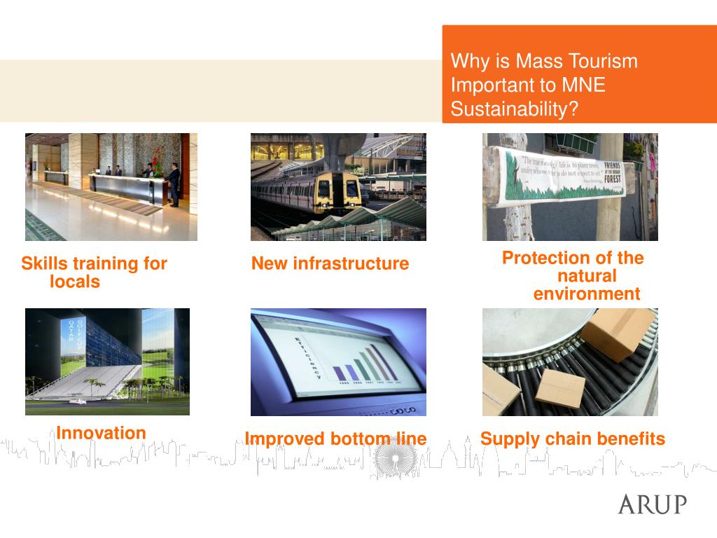 Why is Mass Tourism Important to MNE Sustainability? • Protection of the naturalenvironment • Skills training for locals • New infrastructure • Innovation • Improved bottom line • Supply chain benefits