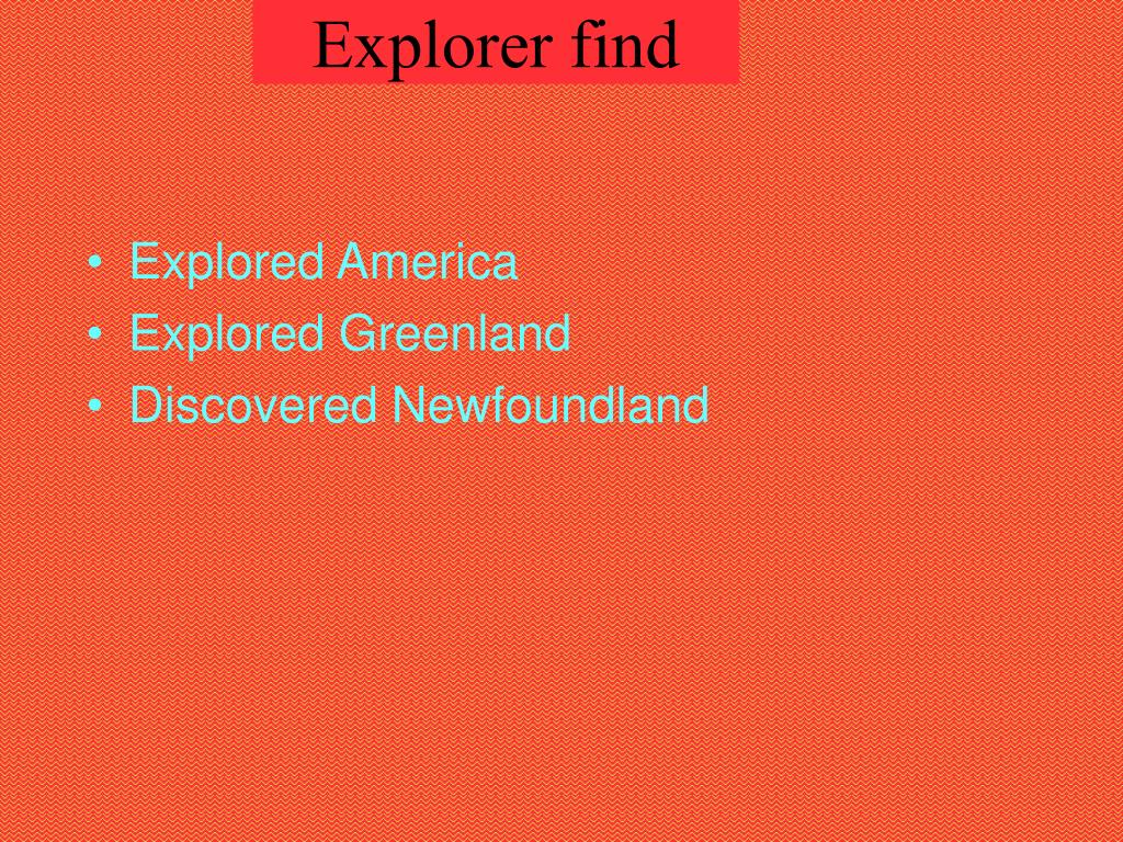 Explorer find • Explored America • Explored Greenland • Discovered Newfoundland