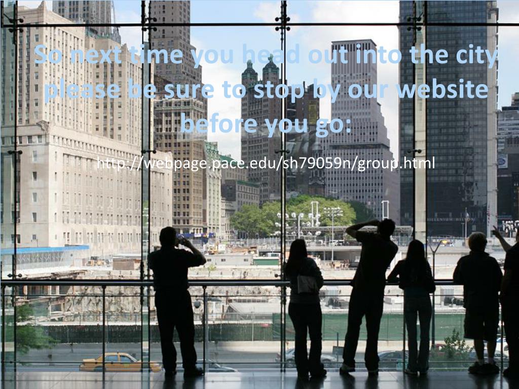 So next time you head out into the cityplease be sure to stop by our website before you go: http://webpage.pace.edu/sh79059n/group.html