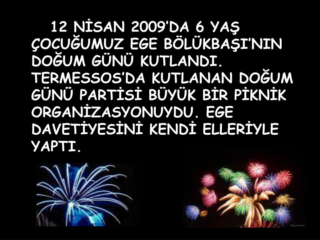 12 NİSAN 2009’DA 6 YAŞ ÇOCUĞUMUZ EGE BÖLÜKBAŞI’NIN DOĞUM GÜNÜ KUTLANDI. TERMESSOS’DA KUTLANAN DOĞUM GÜNÜ PARTİSİ BÜYÜK BİR PİKNİK ORGANİZASYONUYDU. EGE DAVETİYESİNİ KENDİ ELLERİYLE YAPTI.