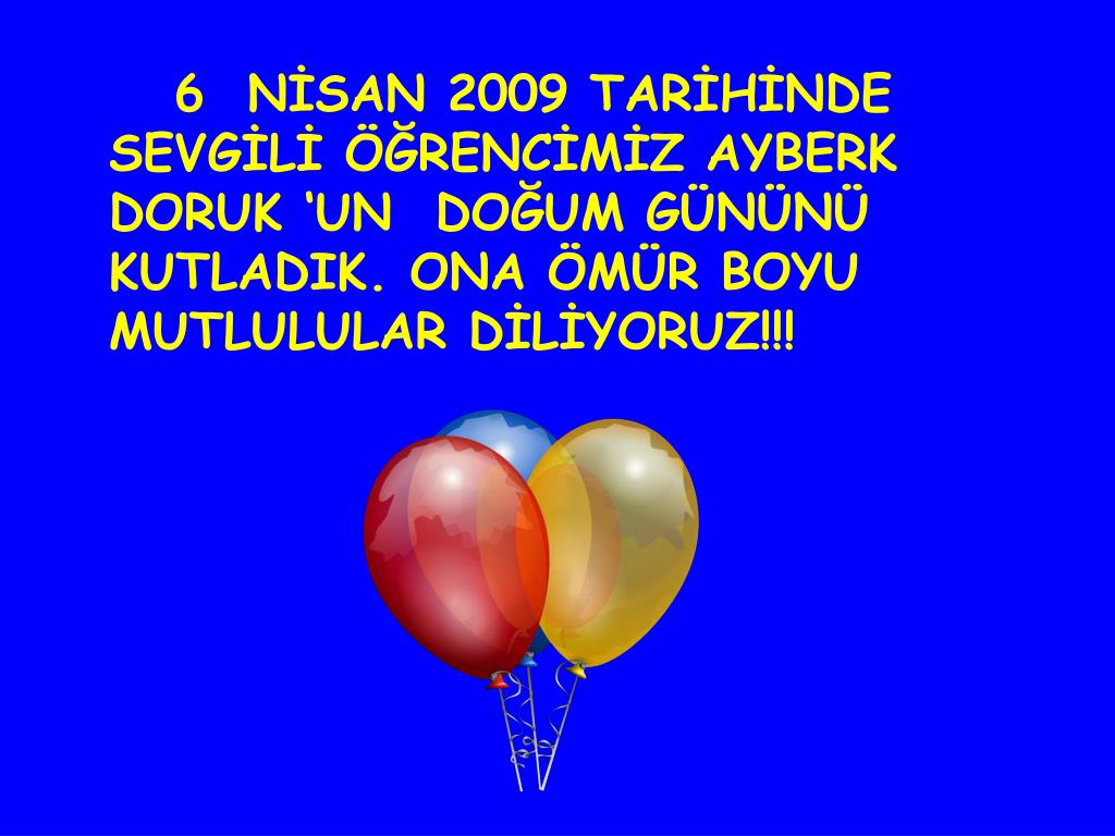 6 NİSAN 2009 TARİHİNDE SEVGİLİ ÖĞRENCİMİZ AYBERK DORUK ‘UN DOĞUM GÜNÜNÜ KUTLADIK. ONA ÖMÜR BOYU MUTLULULAR DİLİYORUZ!!!