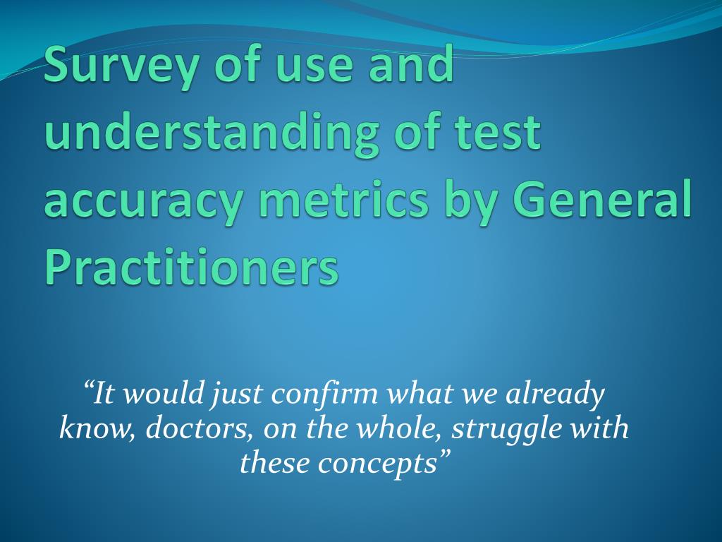 Survey of use and understanding of test accuracy metrics by General Practitioners “It would just confirm what we already know, doctors, on the whole, struggle with these concepts”