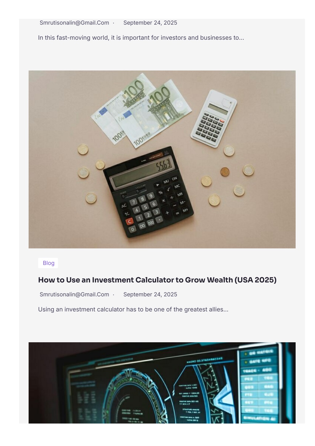 Smrutisonalin@Gmail.Com · September 24, 2025 Inthisfast-movingworld, itisimportantforinvestorsandbusinessesto… Blog How to Use an Investment Calculator to Grow Wealth (USA 2025) Smrutisonalin@Gmail.Com · September 24, 2025 Usinganinvestmentcalculatorhastobeoneofthegreatestallies…