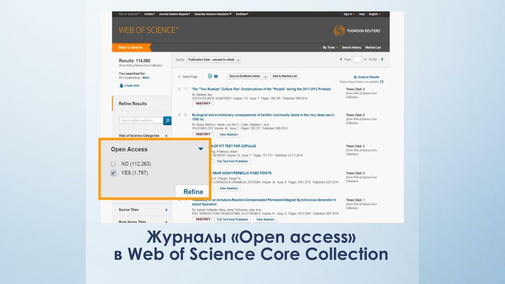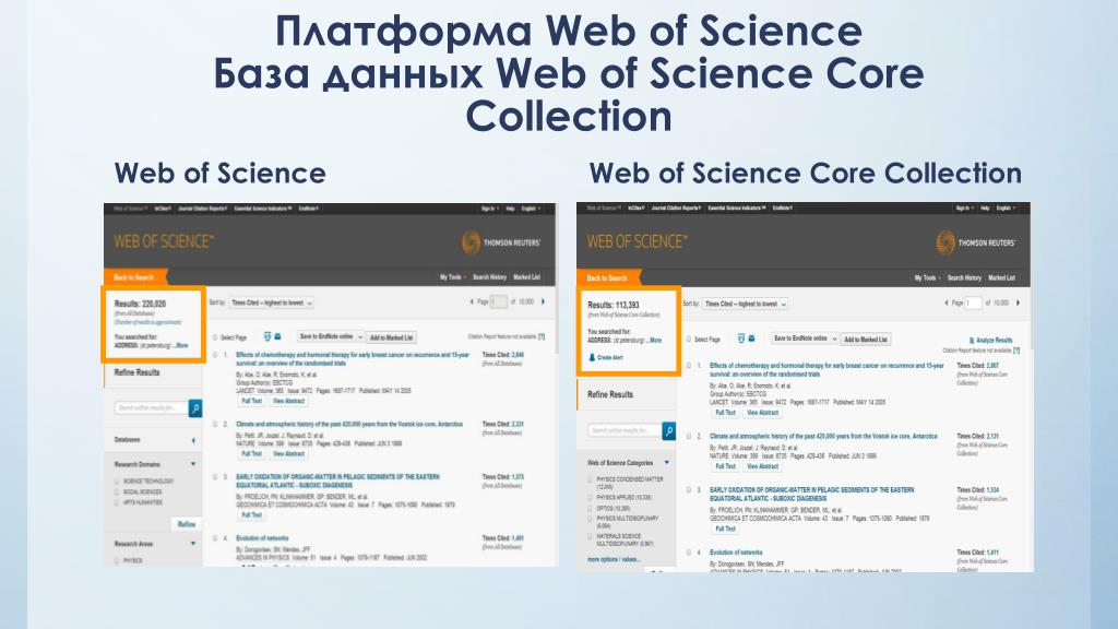 Платформа Web of Science База данных Web of ScienceCore Collection Web of Science Web of ScienceCore Collection