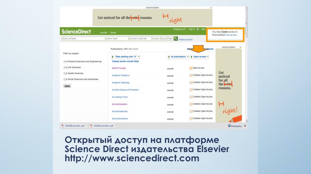 Открытый доступ наплатформе ScienceDirect издательства Elsevierhttp://www.sciencedirect.com