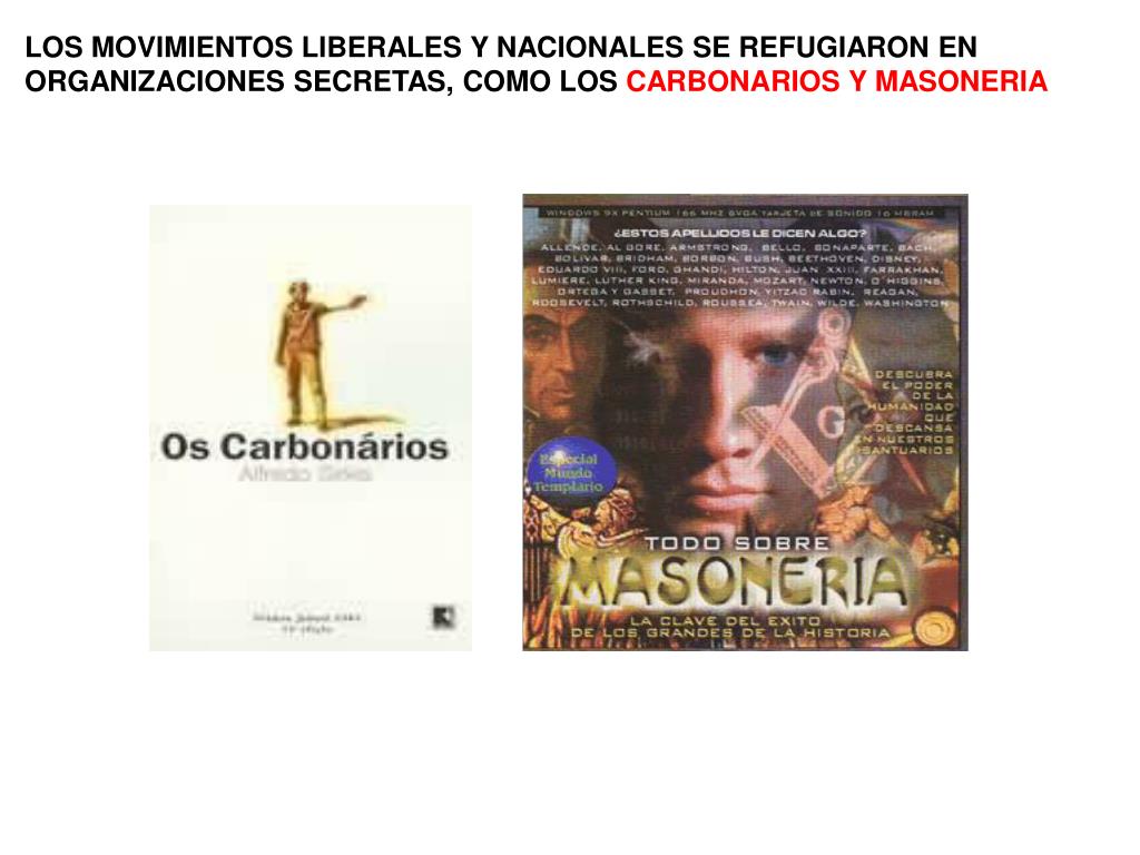 LOS MOVIMIENTOS LIBERALES Y NACIONALES SE REFUGIARON EN ORGANIZACIONES SECRETAS, COMO LOS CARBONARIOS Y MASONERIA