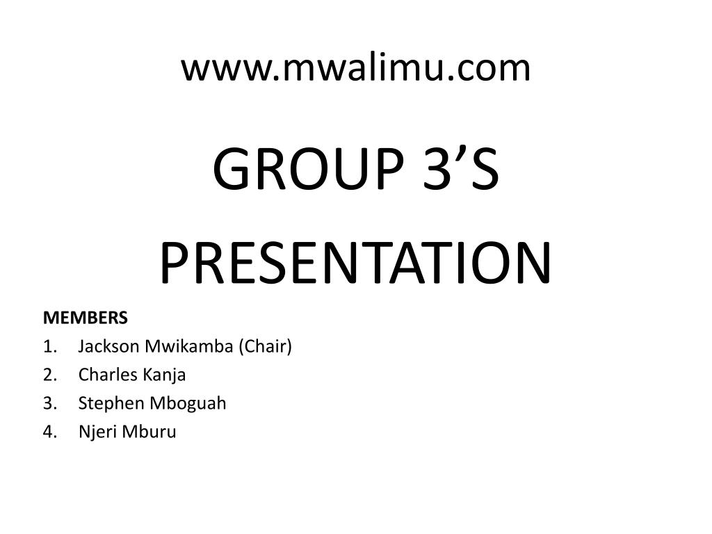 www.mwalimu.com GROUP 3’S PRESENTATION MEMBERS • Jackson Mwikamba (Chair) • Charles Kanja • Stephen Mboguah • NjeriMburu